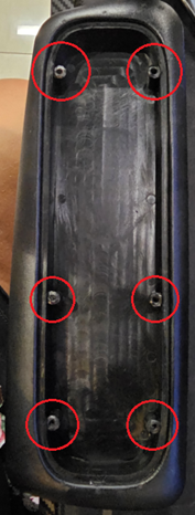 1) Remova os 6 parafusos que prendem o PAD. Eles ficam na parte de baixo do PAD. Veja foto abaixo com localização dos parafusos: